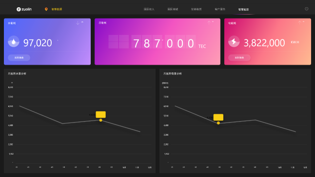 數據采集和分析,能耗管理創新,總耗水耗電數、月度用水量、用電量分析等